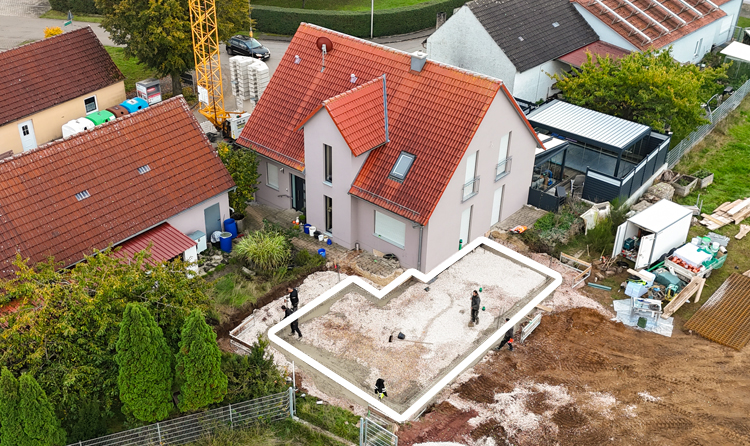 Baubeginn – Anbau Obstbrennerei Scheurer, Großlellenfeld